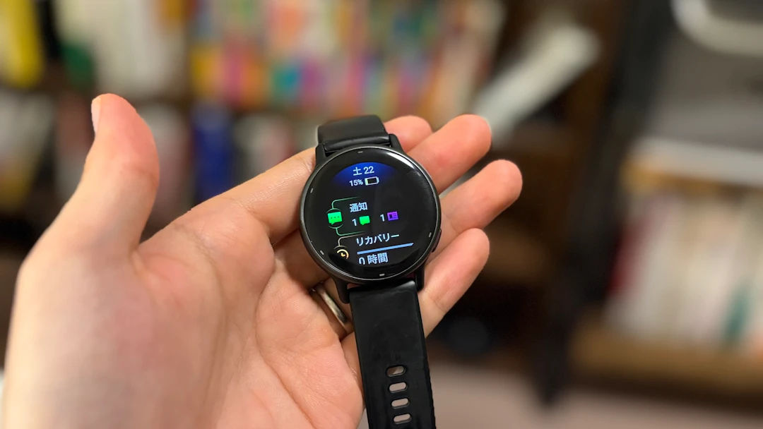 1.2インチのAMOLEDディスプレイは視認性が高く、屋外の日差しの下でもはっきり見えます。トレーニング中や移動中でもパッと情報を確認できるのは嬉しいですね。