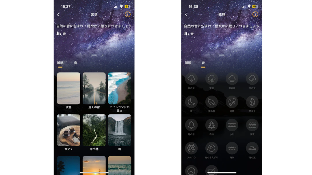 さらに、休憩用のホワイトノイズが20種類以上あります。イヤホンのアプリでここまで揃えているのは珍しいです。海の音、風の音、雨の音……いろいろ試しましたが、個人的に一番気持ちよかったのは「文字を書く音」でした。鉛筆で字を書くときのあの音、たまりません。