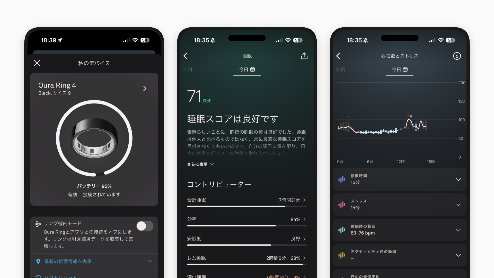 睡眠スコアを毎朝チェックするうちに、深い睡眠の時間が思っていたより短いことがわかりました。その結果、入眠時間を前倒しにしようという意識が生まれています。データを見て行動を変える——それがヘルストラッカーを買った意味だと思っています。Oura Ring 4は「気づき」を与えてくれるデバイスです。